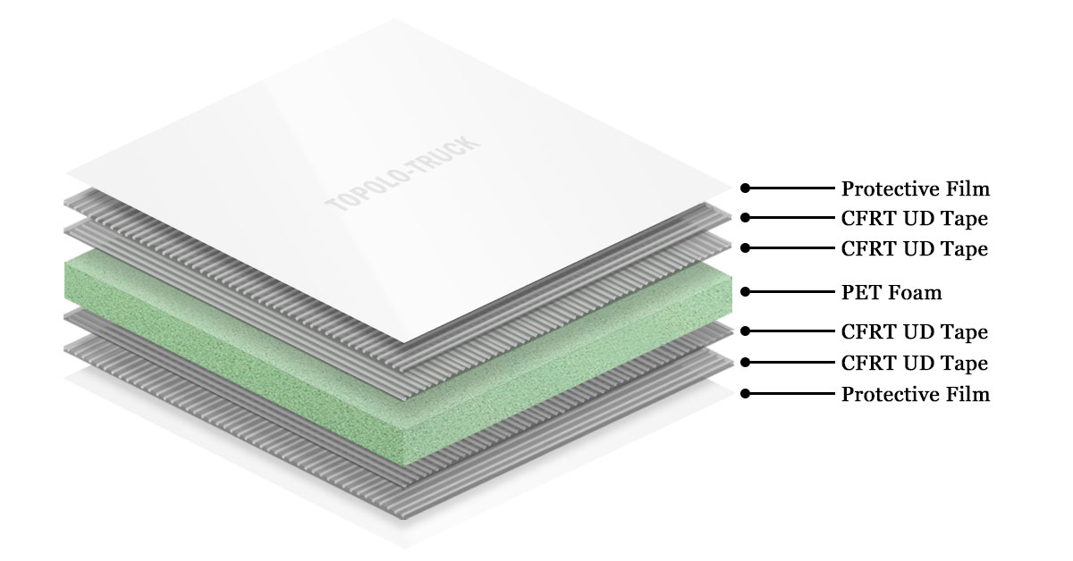 CFRT sheets are relatively lightweight, which helps keep the overall weight of the sandwich panel low while maintaining high strength, crucial for applications where weight is a critical factor.